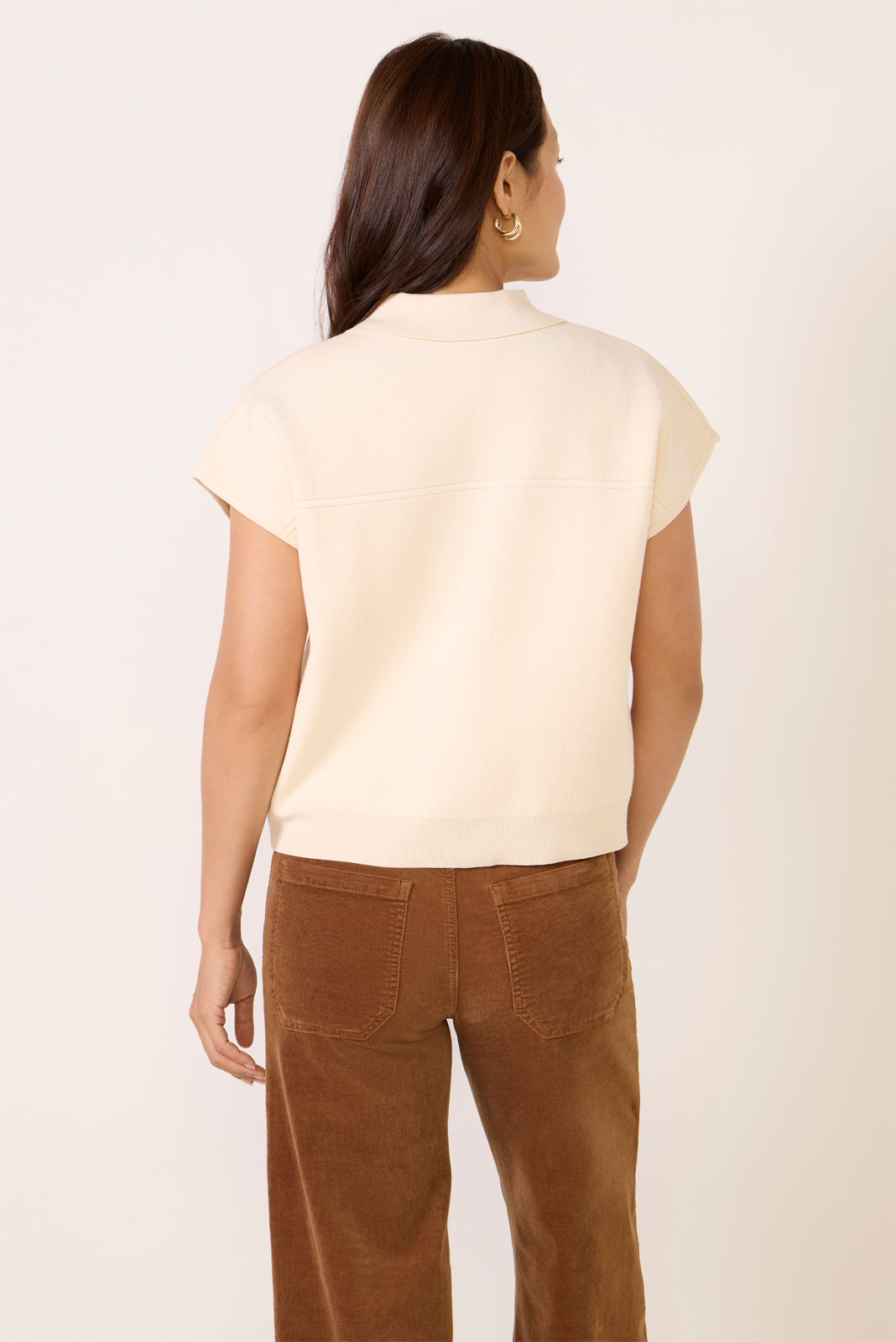 The perfect addition to your workwear wardrobe. the Matty Sweater by Melissa Nepton features a polo neckline. zip front closure. dropped shoulders. and rib knit details on the hemline.