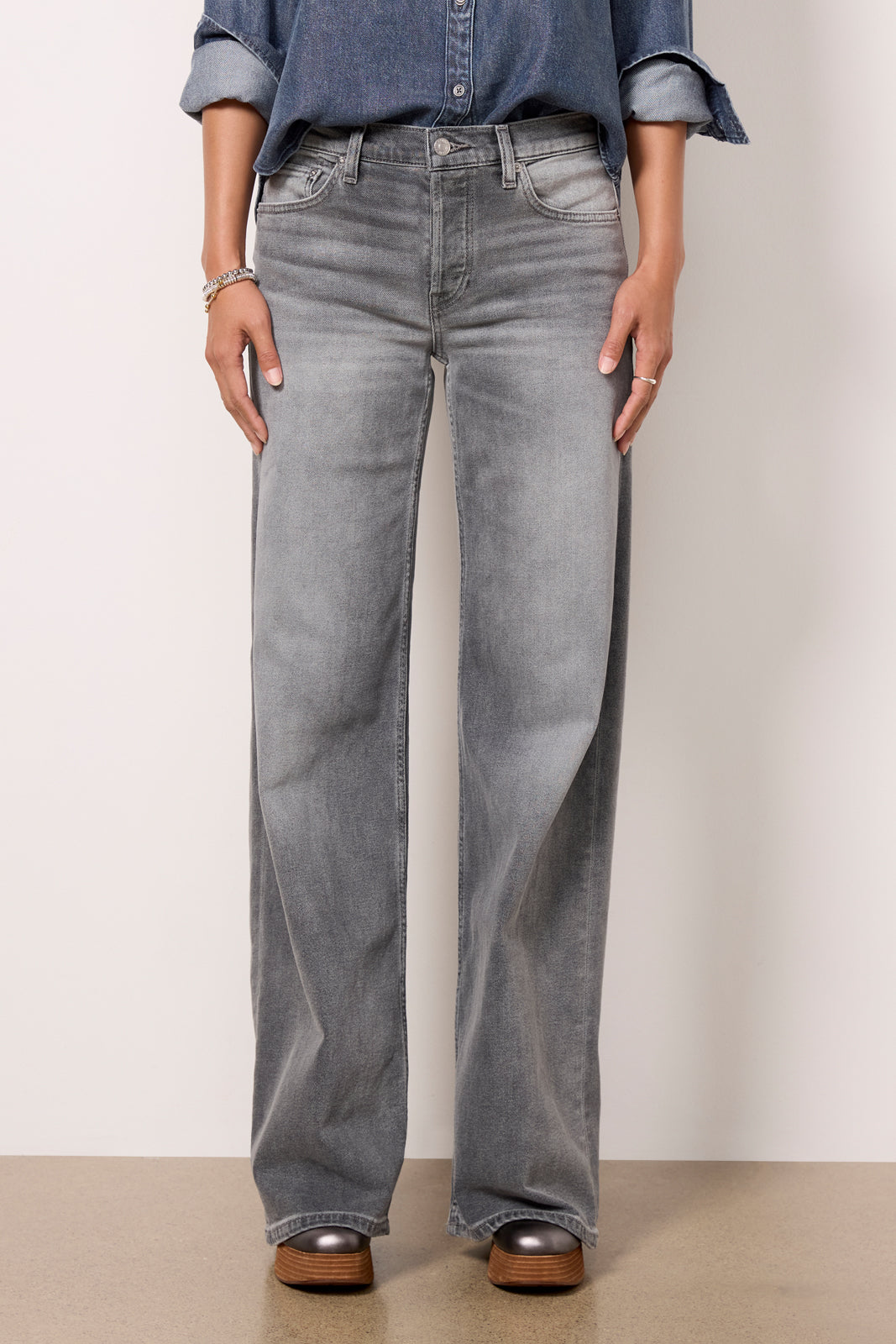 Finished in a faded grey wash. these wide leg jeans by RE/DONE are the perfect addition to your denim collection. featuring a mid-rise fit. button fly closure. and full-length inseam.