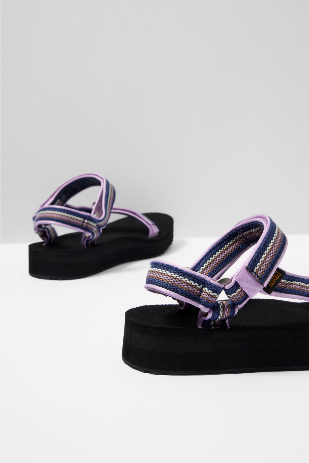 Striped woven straps update the Midform Universal sandal by Teva. Designed with a comfortable EVA platform and adjustable hook-and-loop closures. these sporty-chic sandals are ready to take on any warm-weather adventure.