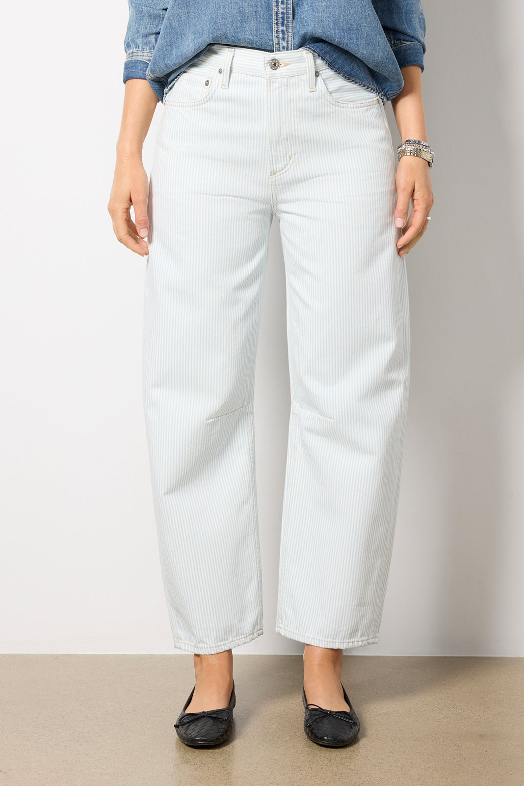 Refresh your denim collection with these subtly striped barrel jeans by Citizens of Humanity. Finished in rigid cotton denim. the Miro features a relaxed silhouette with a tapered. bowed leg. high-rise waist. and ankle-length hems.