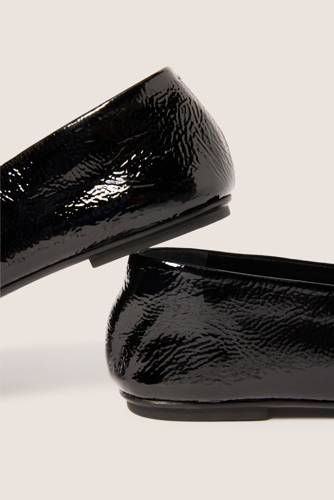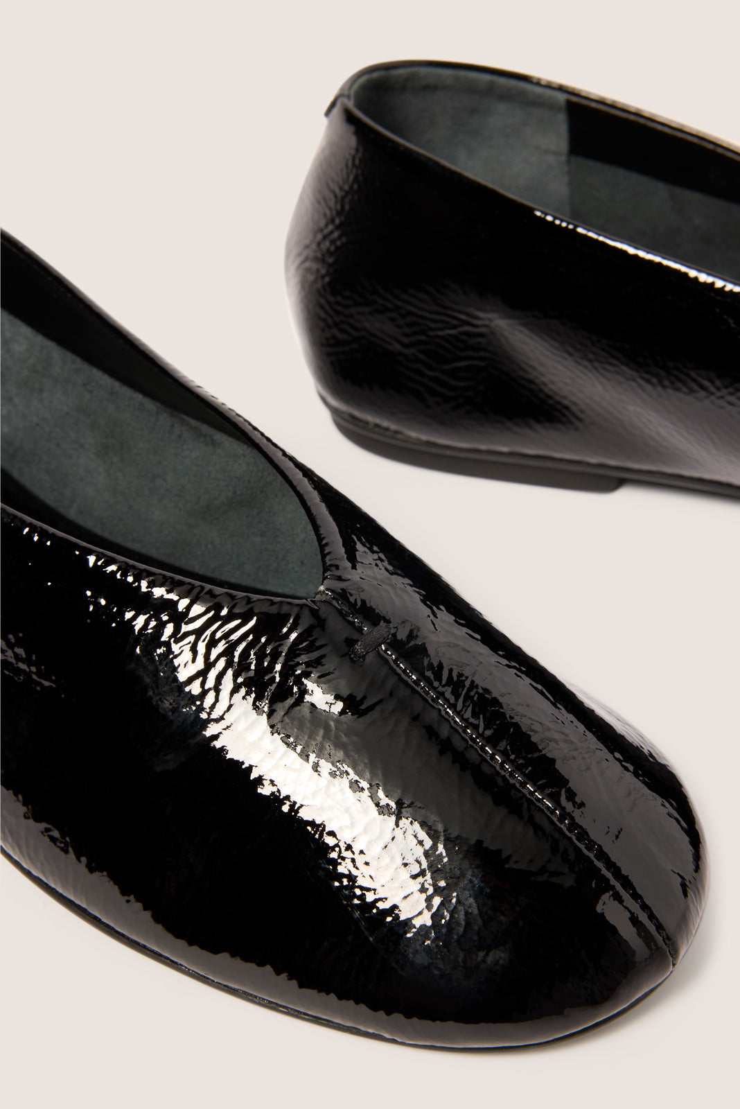 Complete any look with these chic ballet flats by Schutz. crafted from glossy patent leather with a V-shaped vamp and round toe.
