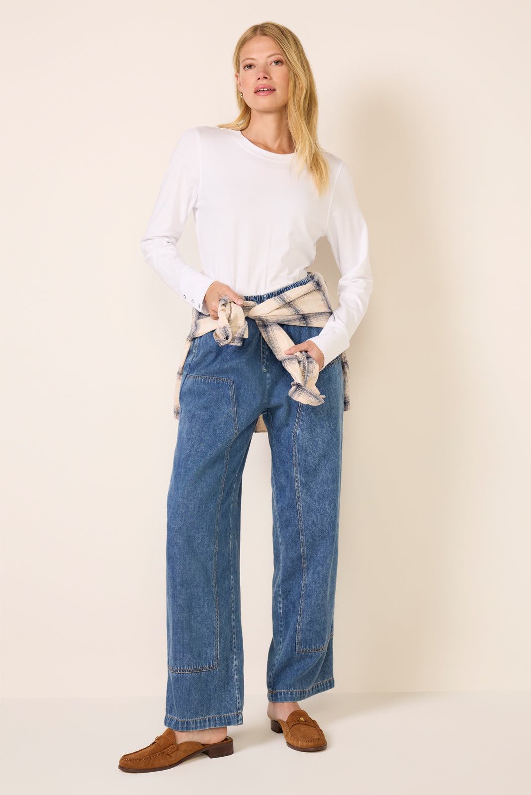 The Peyton Crew Top by EVEREVE is the not-so-basic essential you need in your wardrobe this season. Crafted from a soft knit pima cotton blend. this top features a crew neckline. fitted silhouette. and long sleeves with snap-button details.