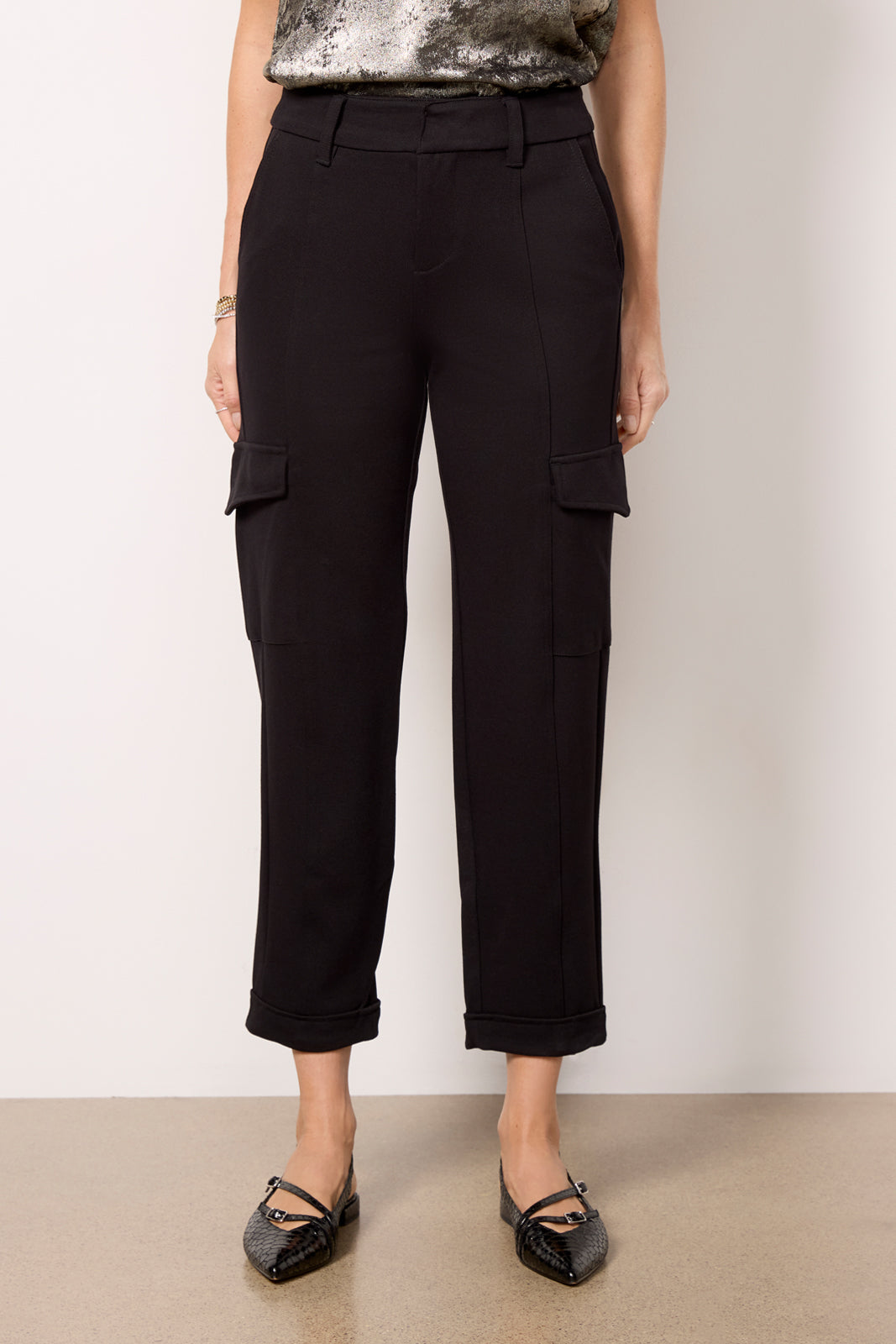Add a touch of utility to your work style look with the flattering Ponte Cargo pant from Sanctuary. featuring a high-rise waist. cropped inseam. and straight-leg silhouette.