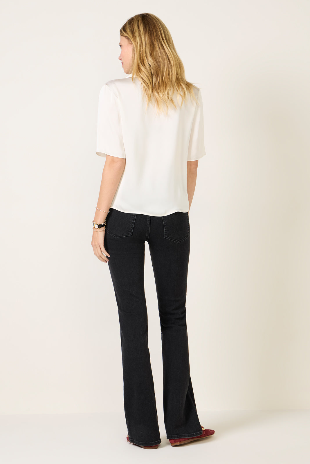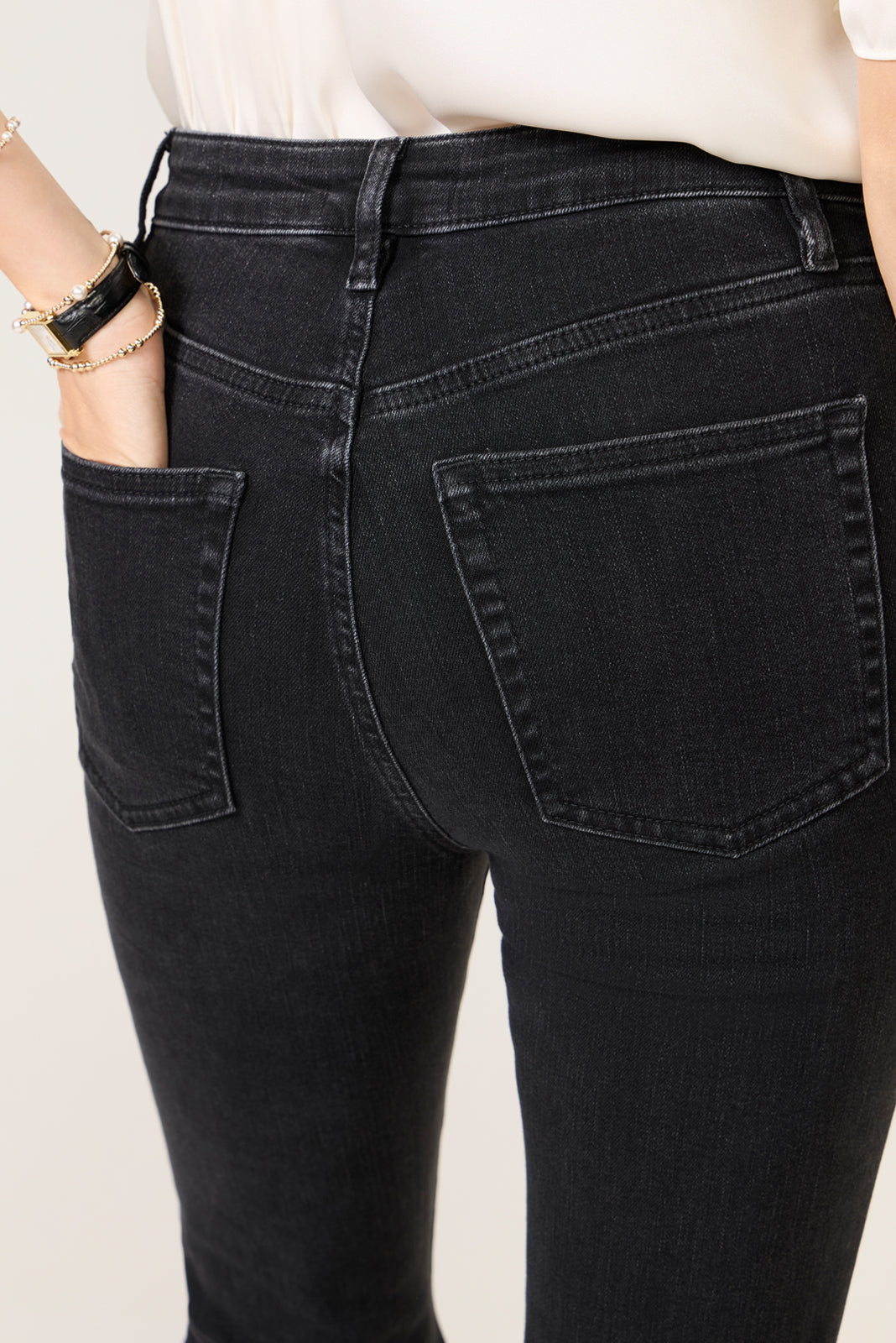 Perfect for your day-to-night denim collection. The Reboot bootcut jean by FRAME features a flattering high-rise silhouette. full-length leg. and comfort-stretch denim fabric in a versatile black wash.