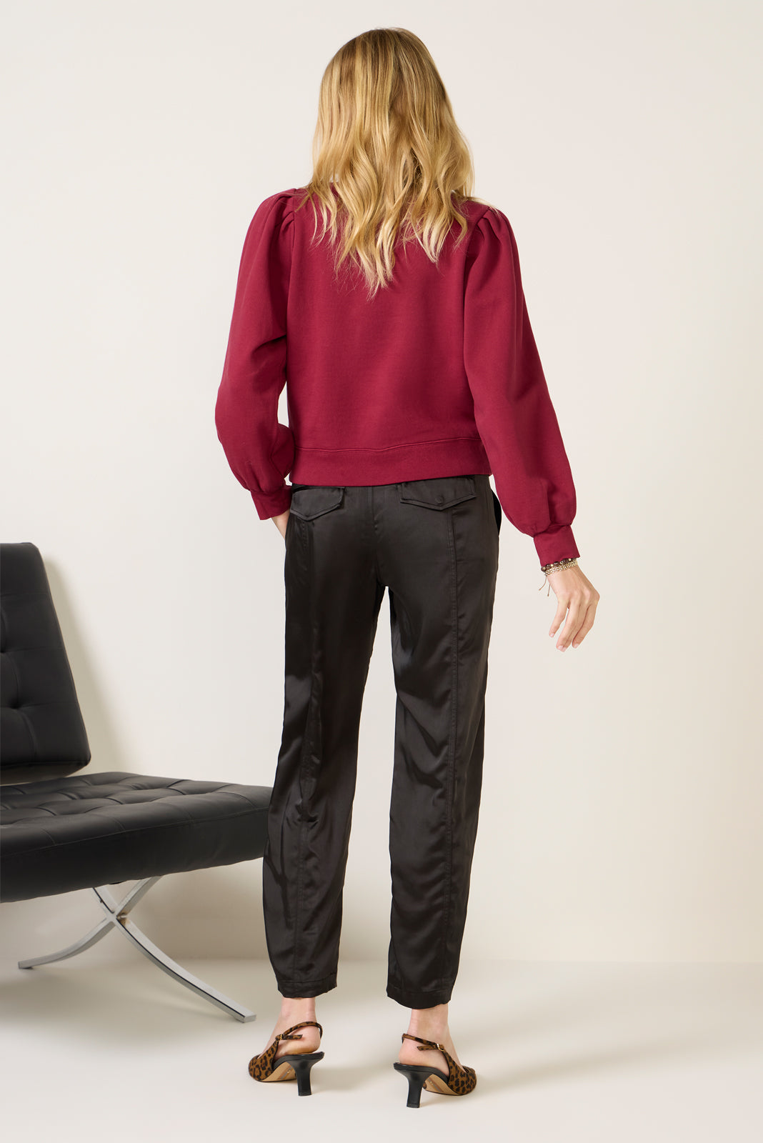 These satin pants by Sanctuary will take you from day to night in style. The Sahara pants feature a relaxed. tapered leg silhouette with a mid-rise waist. seamed detailing. and pockets at the front and back.