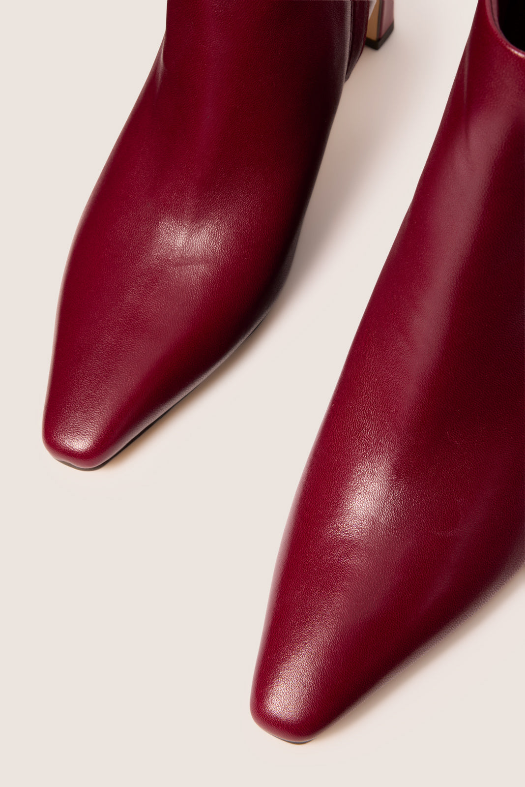 Add a pop of red to your shoe collection with the Saige Bootie by Sam Edelman. featuring a pointed toe. inside zipper closure. and slim block heel.