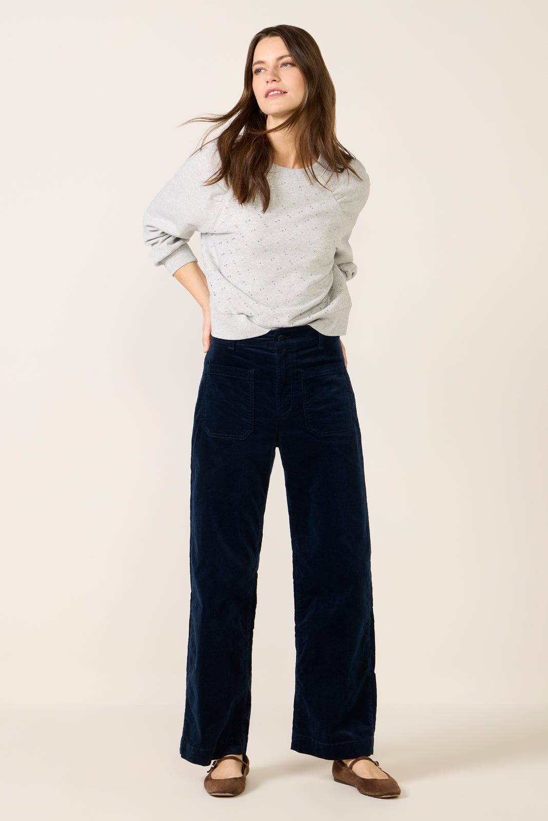 Finished in soft velvet fabric. the Sailor Pant by ASKK NY features a relaxed. wide leg silhouette with a high-rise waist. full-length inseam. and patch pockets at the front and back.