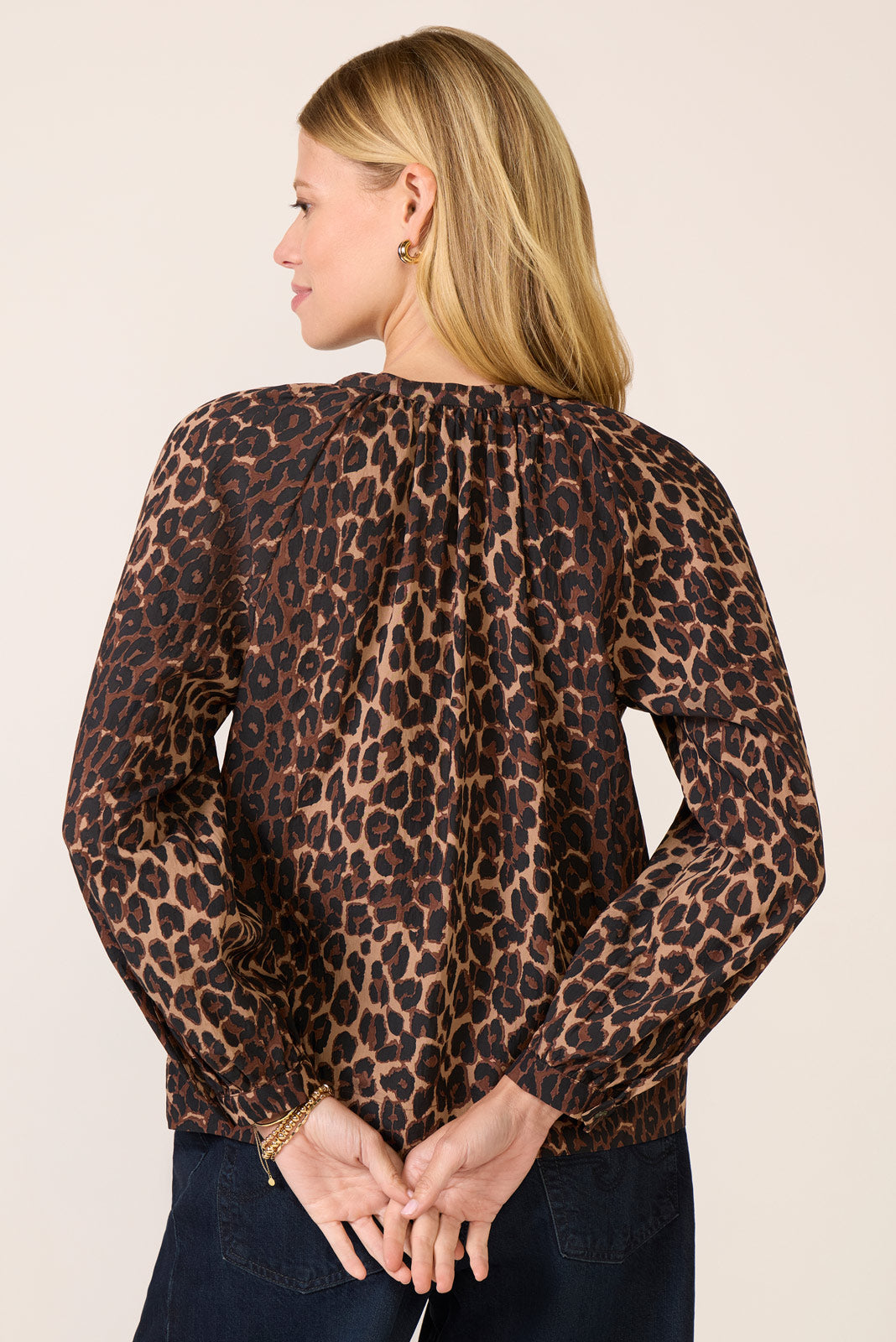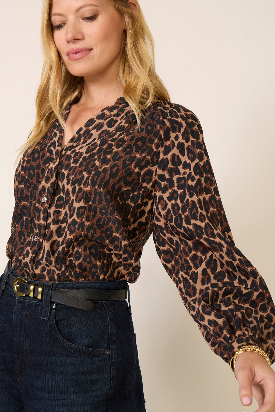 Elevate your day-to-night look with the Saint leopard print top by Rails. Finished in soft lyocell-blend fabric. this button-front top features a relaxed fit. gathered neckline. and long puff sleeves that hit just above the wrist.