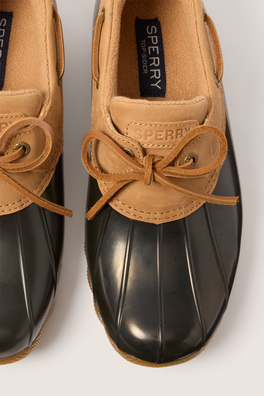 Designed for rain or shine. these waterproof duck boots by Sperry feature a low-profile silhouette with a classic rubber shell. thermal lining. and molded Wave-Sipingâ„?outsole to take on the elements.