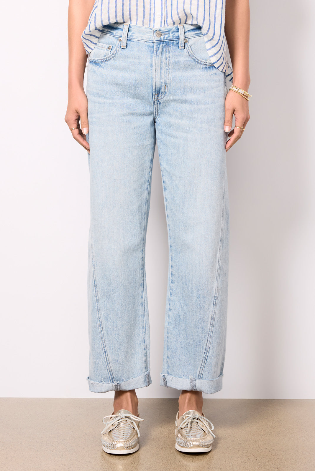 The Kacey Seamed Jean from Pistola will be your new go-to for effortless style and comfort. Crafted in non-stretch cotton denim. this jean features a mid-rise fit. a straight leg silhouette. and a front seam detail.