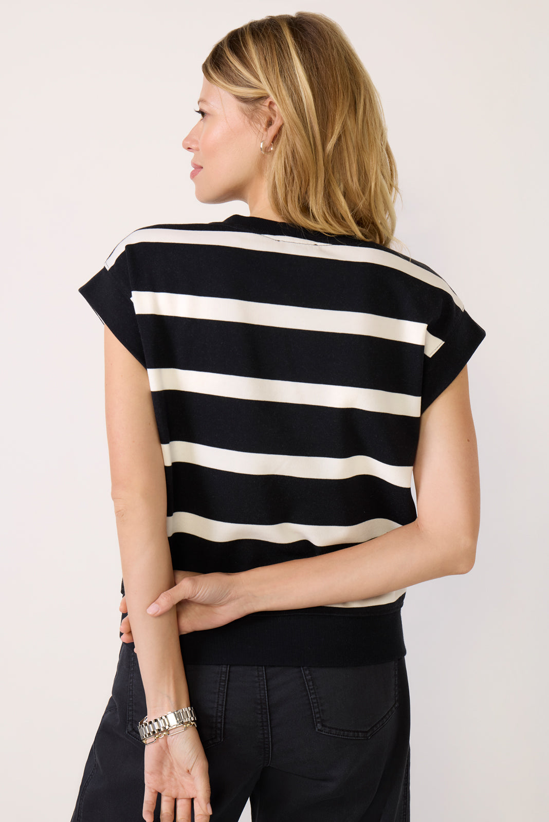 Perfect for everyday wear. this striped sweatshirt by EVEREVE features a crewneck silhouette with cap sleeves and a banded hem.
