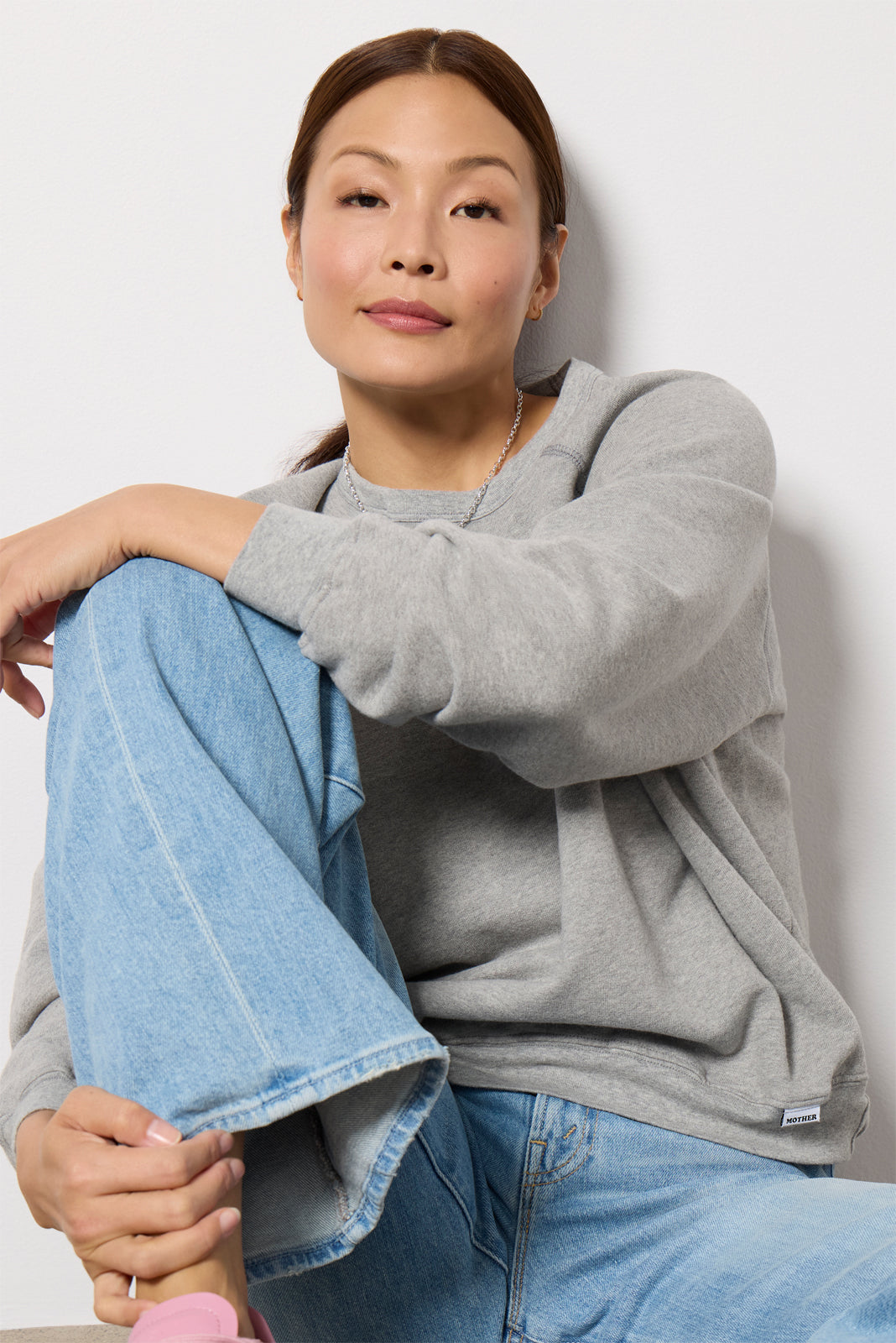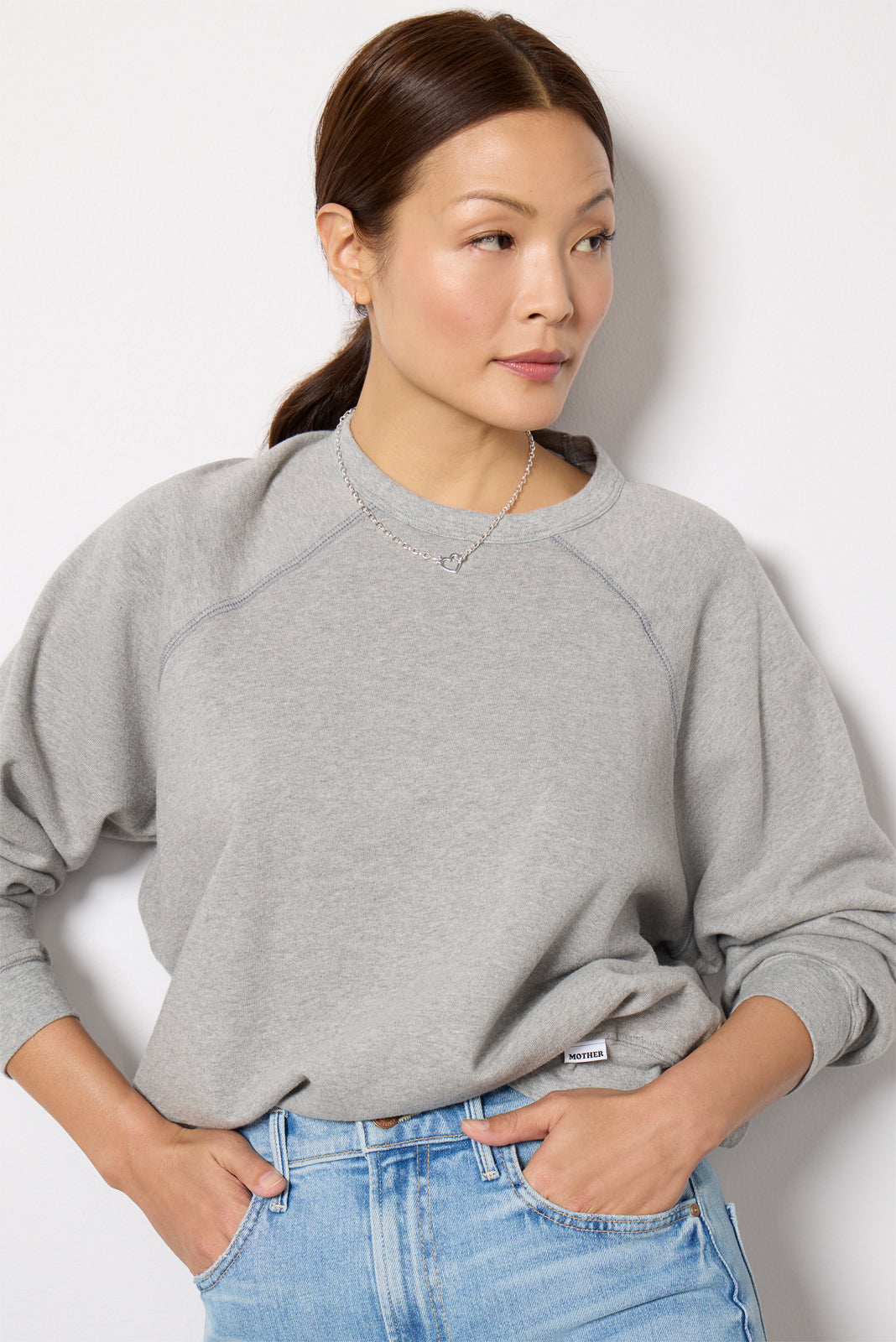 Stay comfy-chic in the Biggie Concert sweatshirt by MOTHER. Crafted in soft. comfortable cotton. this raglan pullover features a crew neckline. ribbed trim. and an easy. relaxed fit.