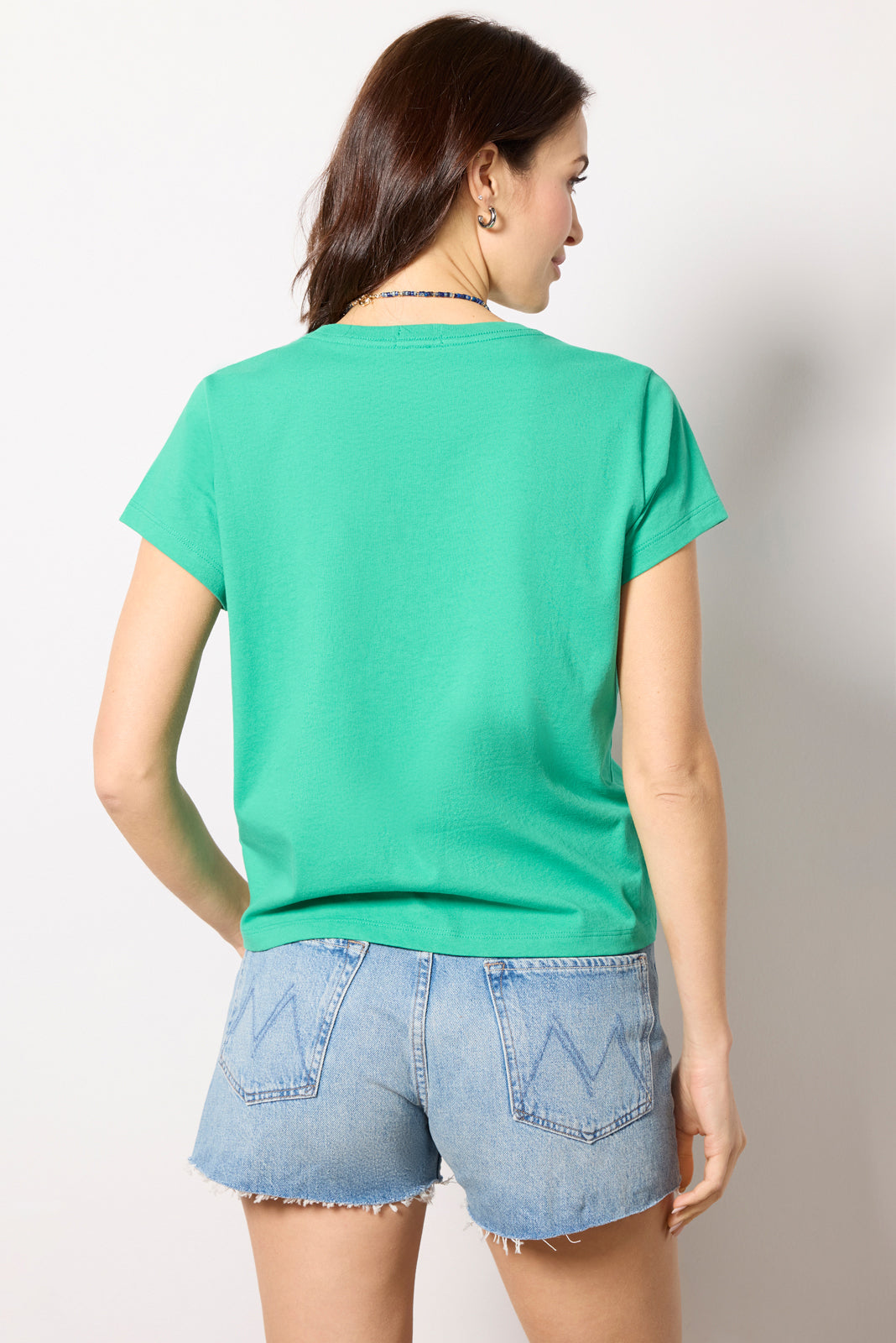 Top off your tee collection with The Boxy Goodie Goodie by MOTHER. crafted in soft cotton fabric with a crew neckline. embroidered appliqué "Surf Patrol" lettering. and a slim fit for a vintage-inspired feel.