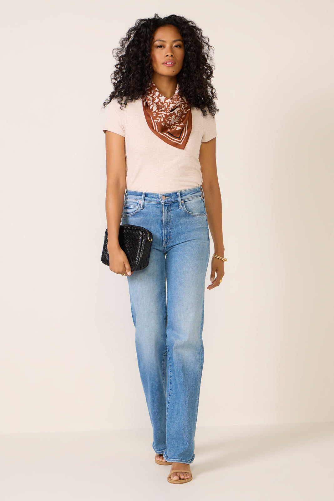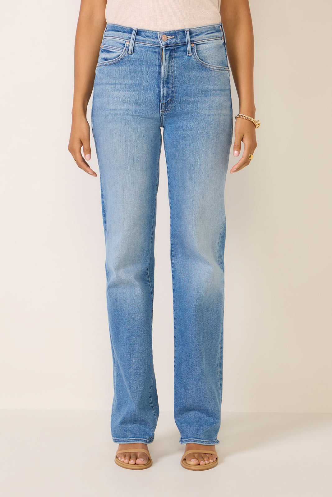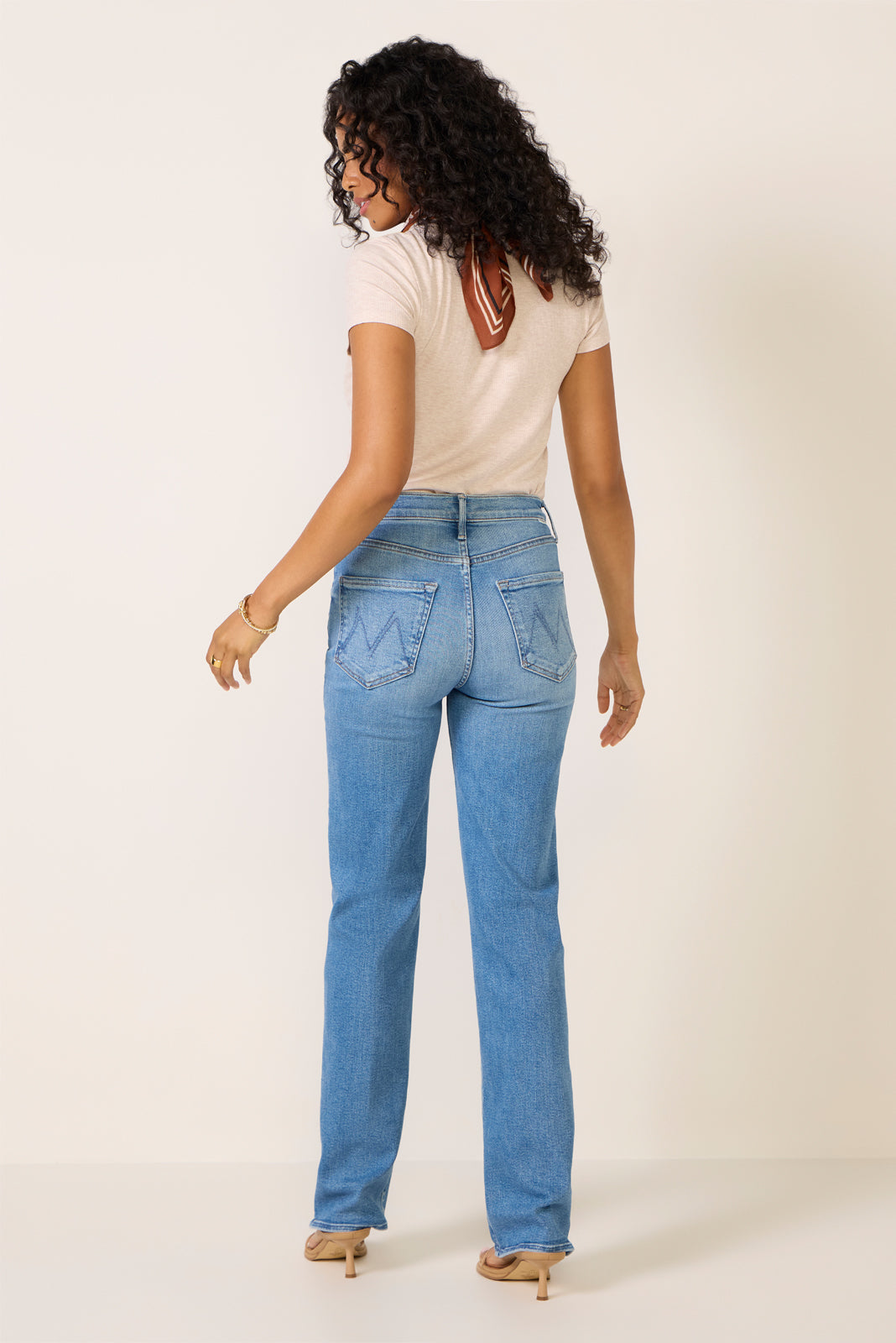 A relaxed straight leg defines The Kick It jean by MOTHER. featuring full-length hems. soft stretch denim. and a light blue wash. Dressed up or down. they'll be your new favorite denim staple.