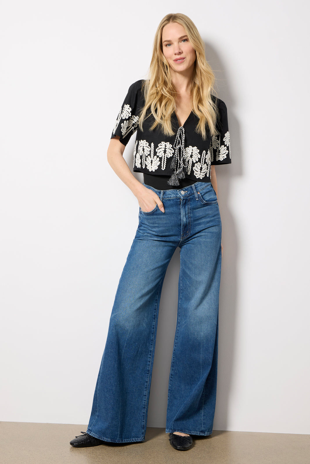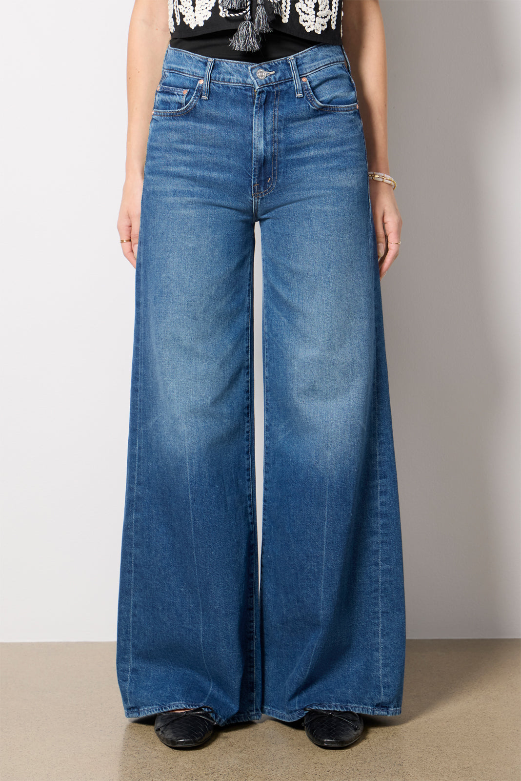 Update your denim collection with The Undercover Sneak wide leg jean by MOTHER. crafted in rigid cotton with a high-rise waist. faded blue wash. and full-length clean hems.