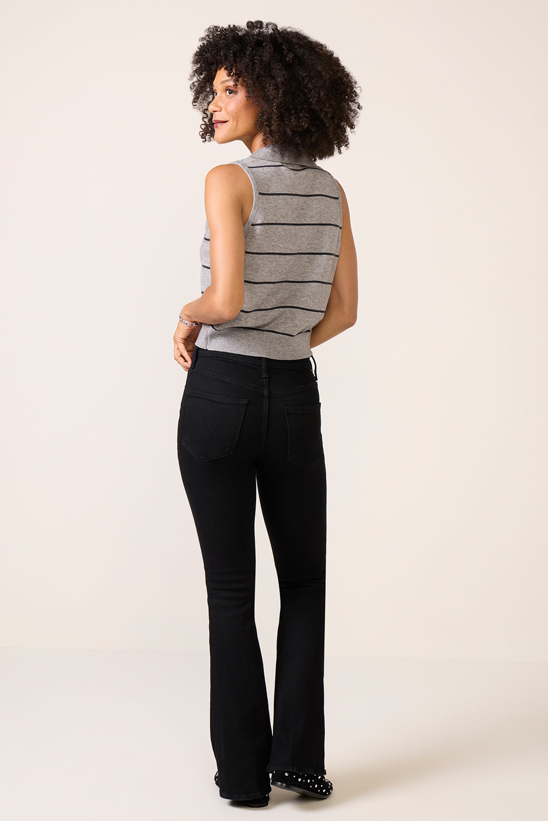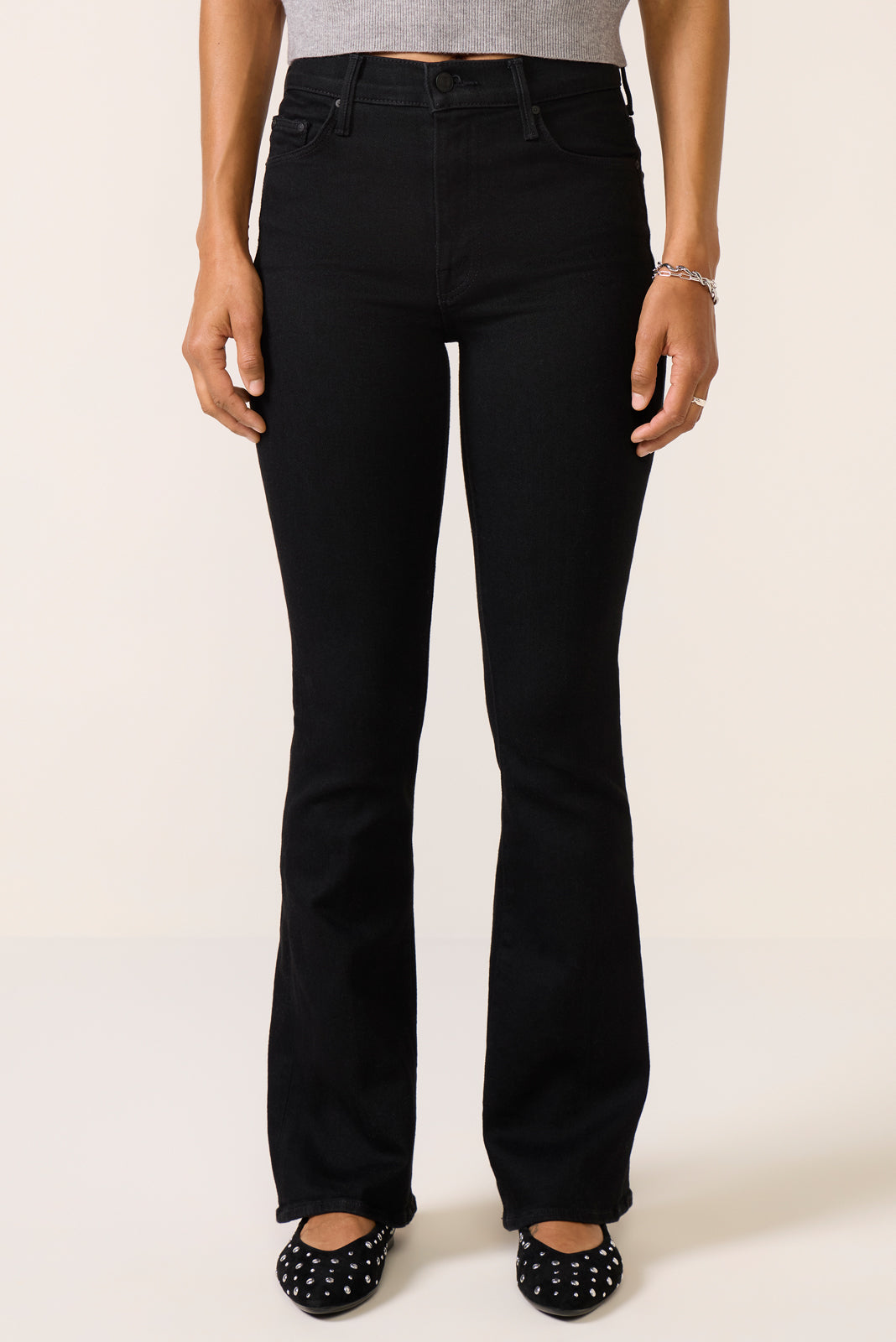 Finished with full-length clean hems. The Weekender flare jean by MOTHER is crafted from soft stretch denim with a flattering mid-rise waist and versatile black wash.