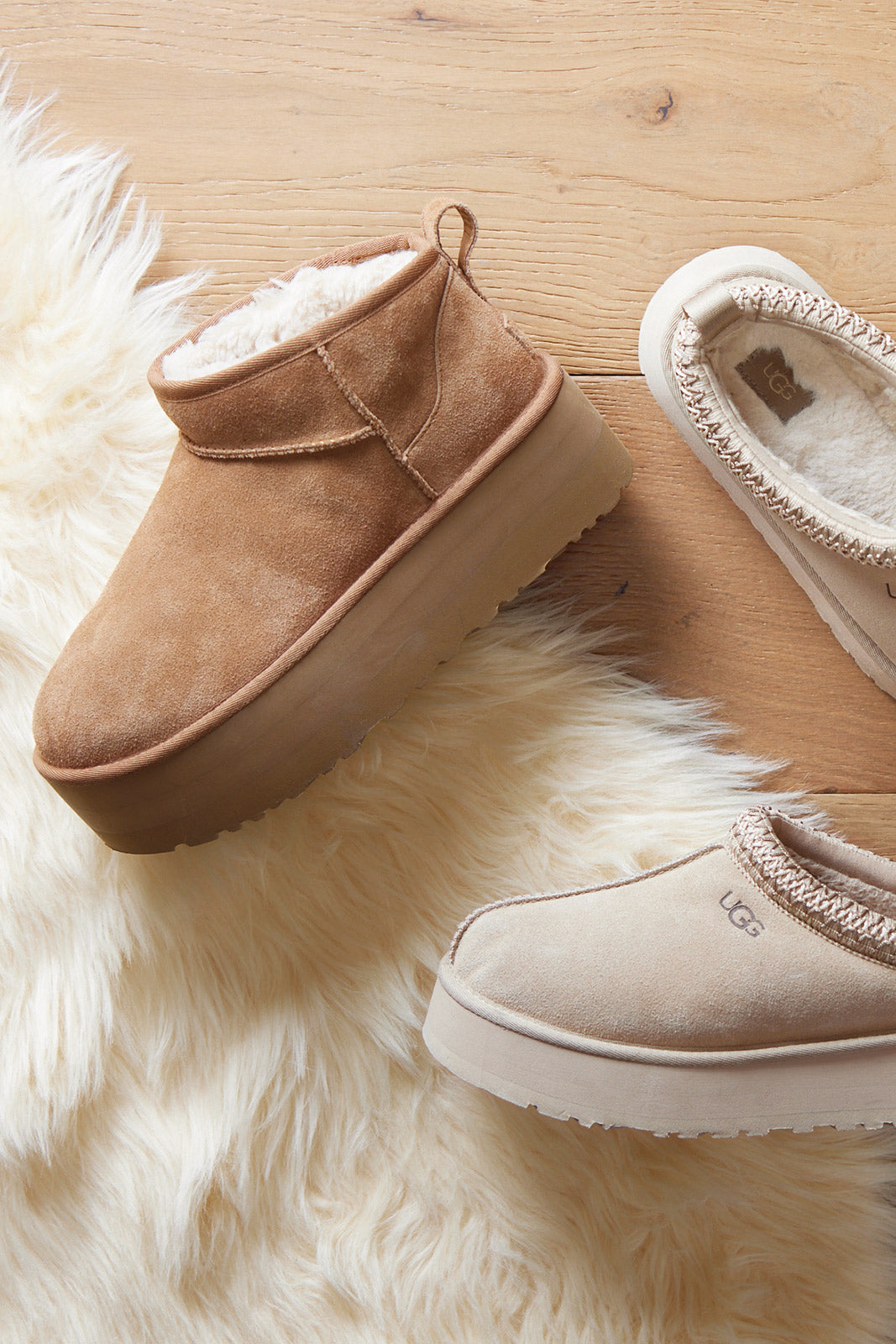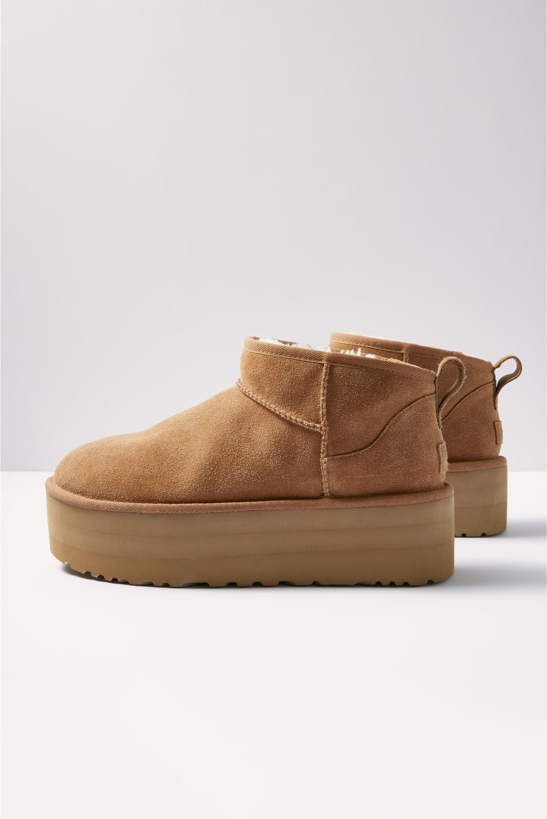 These classic UGG® boots reach new heights with a bold platform sole. The Ultra Mini is crafted for ultimate coziness with soft suede and plush wool-blend lining.